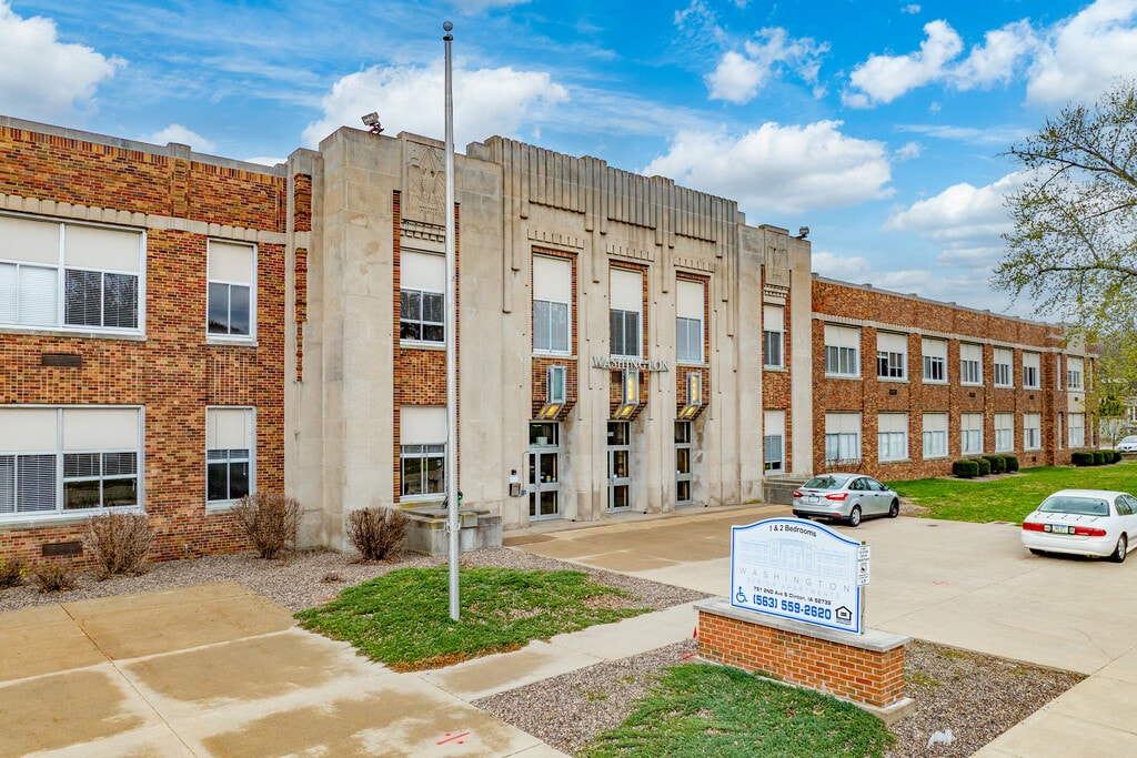 Located in Clinton, IA, Washington Senior Apartments offer a stunning rehabilitation of the town’s beloved middle school, now transformed into a beautiful 55+ independent living community. This affordable housing option features incredible studio, 1-, and 2-bedroom floor plans with vaulted ceilings, granite countertops, and original hardwood flooring. Residents enjoy exceptional amenities, including a library, a spacious community room, and a fitness area. Utilities included in the monthly rent are heat, water, sewer, and garbage pickup. Conveniently located near shopping, dining, and other services, Washington Senior Apartments provide a perfect blend of charm, comfort, and convenience—an ideal place to call home! *Income Limits Apply. To be eligible, you must be 55 or older and your gross annual income must fall below our income limits: 1 Person: $39,120 2 Person: $44,700