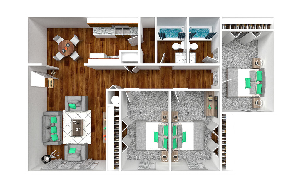 2 Bedroom 2 Bath - Floorplan 1 3 Bedrooms