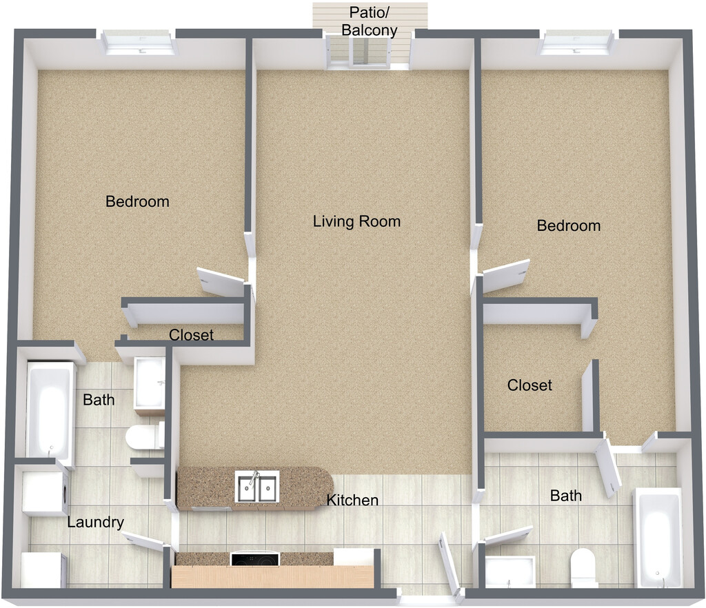 Apartment Model: 2 Bedroom$1,2002 Bedroom, 2 Bath, 1055 sq ftAvailable Now![]()