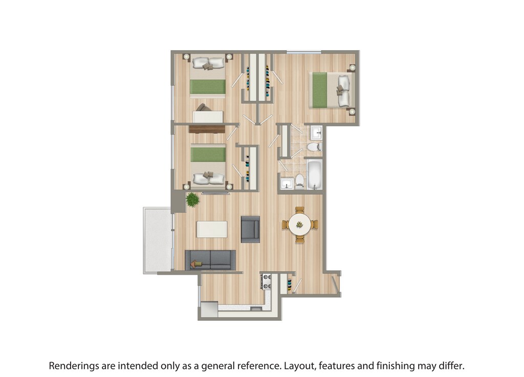 Apartment Model: Two Bedroom CFrom $1,6732 Bedroom, 1 Bath, 825-826 sq ftAvailable NowFloor plans are artist's rendering. All dimensions are approximate. Actual product and specifications may vary in dimension or detail. Not all features are available in every rental home. Please see a representative for details.
