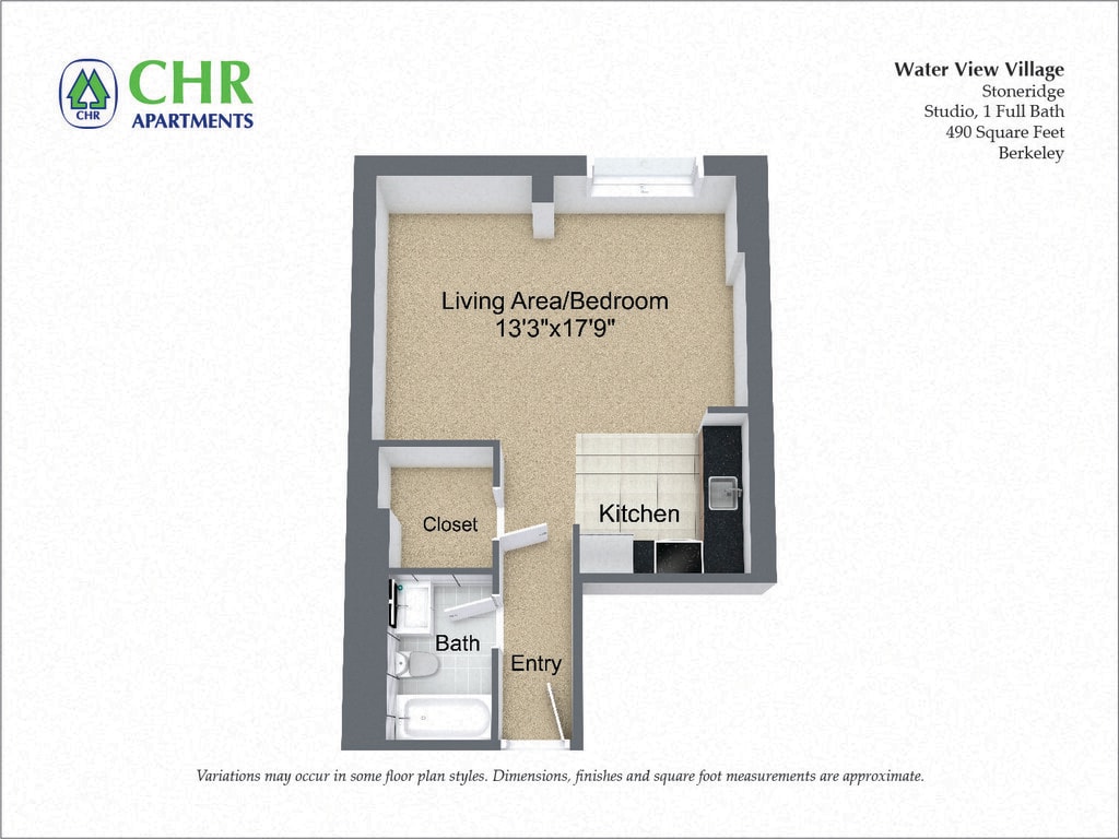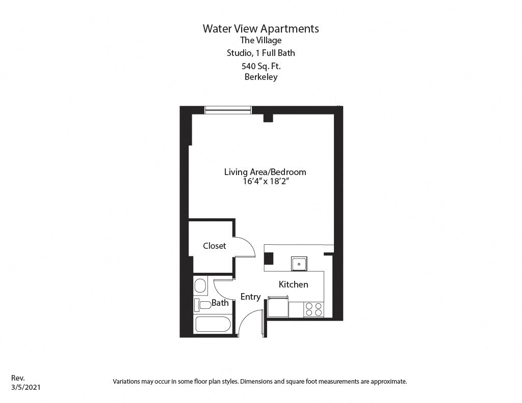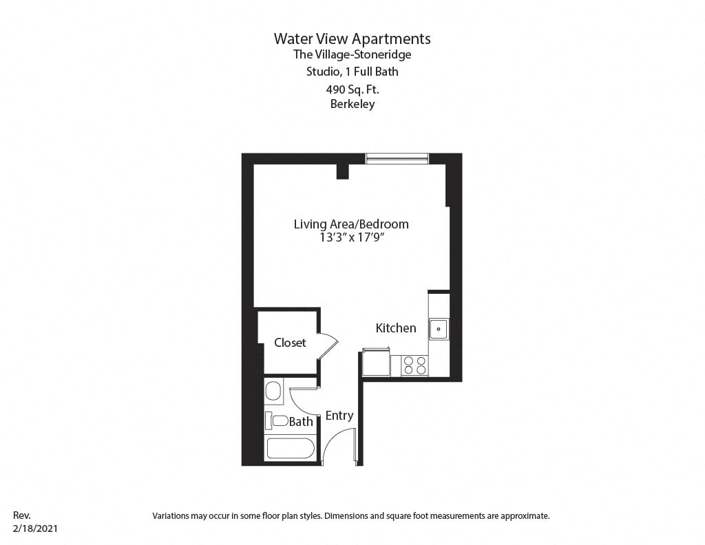 Studio/1 Bath with Full Kitchen - Floorplan 2 ![]()