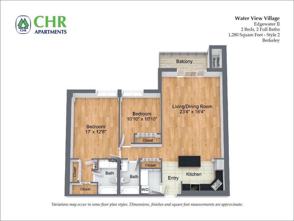Studio to 2 Bedroom Apartments at Water View Village currently range from $2,300 to $3,140