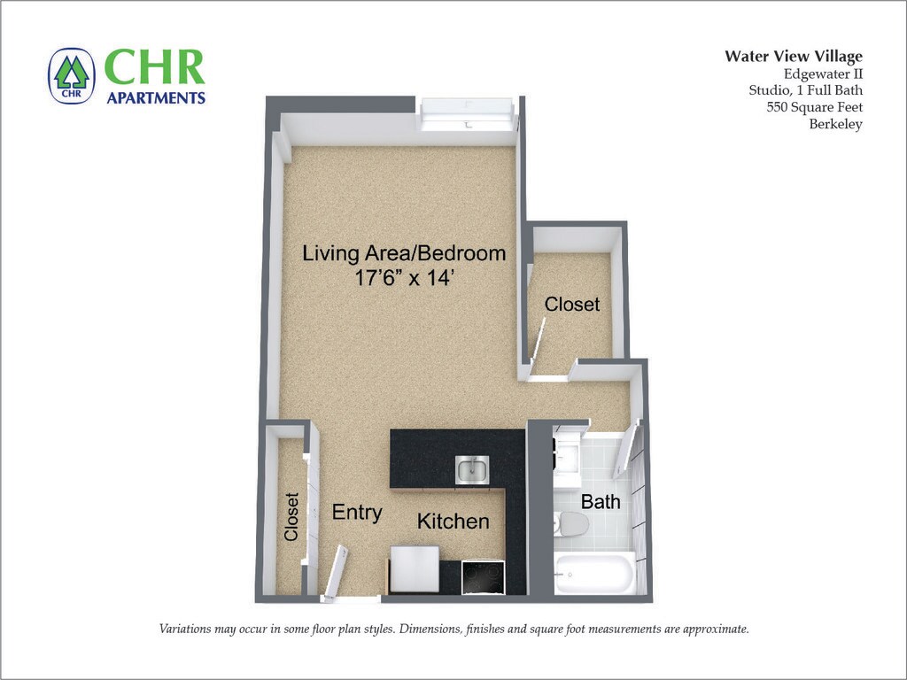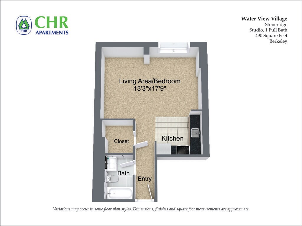 Studio, 1 Bath, 490-550 sq ftTotal Monthly PriceAvailable NowModel Gallery