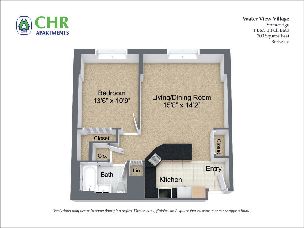 Studio/1 Bath with Full Kitchen - Floorplan 3 Studio/1 Bath with Full Kitchen