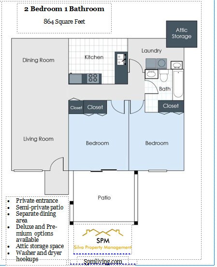 2 Beds, 1 Bath, 864 sq ftAvailability Details