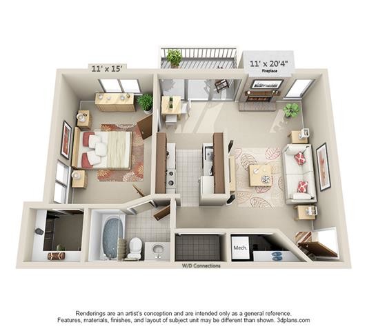 2 Beds, 1 Bath, 856 sq ftAvailable NowModel Gallery