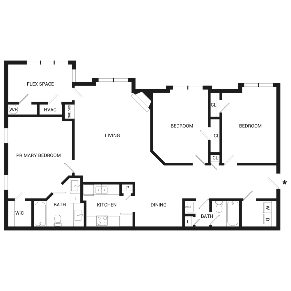 Apartment Model: The GrandFrom $1,5993 Bedroom, 2 Bath, 1477 sq ftAvailable NowFloor plans are artist's rendering. All dimensions are approximate. Actual product and specifications may vary in dimension or detail. Not all features are available in every rental home. Please see a representative for details.