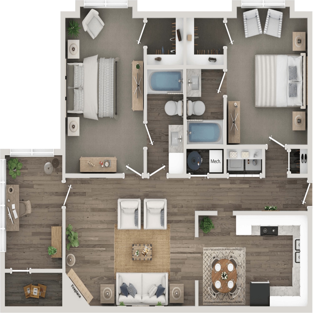Apartment Model: The BeverlyFrom $1,3442 Bedroom, 2 Bath, 1180 sq ftAvailable NowFloor plans are artist's rendering. All dimensions are approximate. Actual product and specifications may vary in dimension or detail. Not all features are available in every rental home. Please see a representative for details.