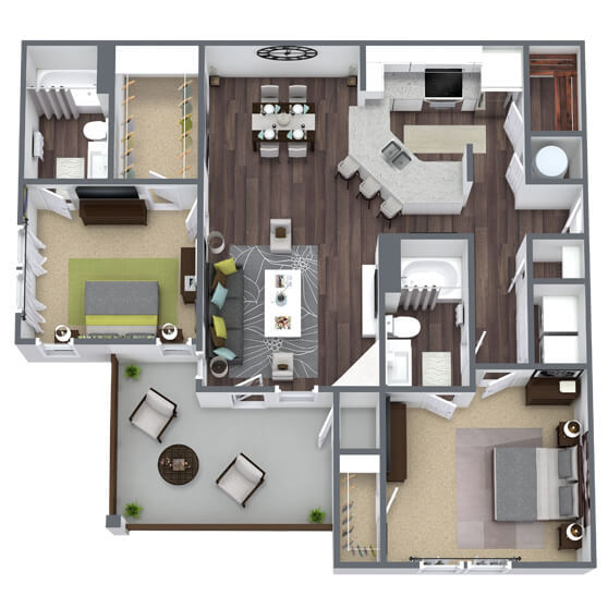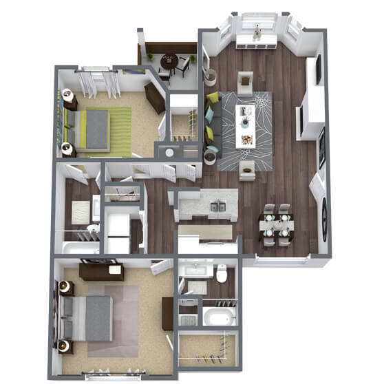 2 Beds, 2 Baths, 1279 sq ftAvailable NowLargest 2 BedroomThis is the largest 2 Bedroom at this PropertyModel Gallery