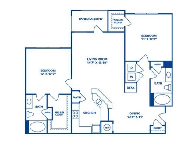 2 Beds, 2 Baths, 1324 sq ftAvailable January 2, 2026Largest 2 BedroomThis is the largest 2 Bedroom at this PropertyModel Gallery