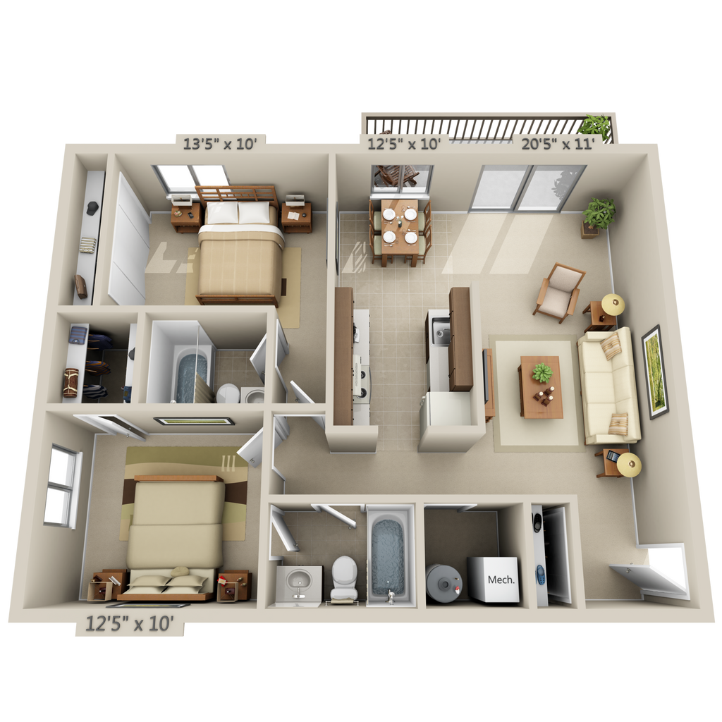2 Beds, 2 Baths, 954 sq ftAvailable NowModel Gallery