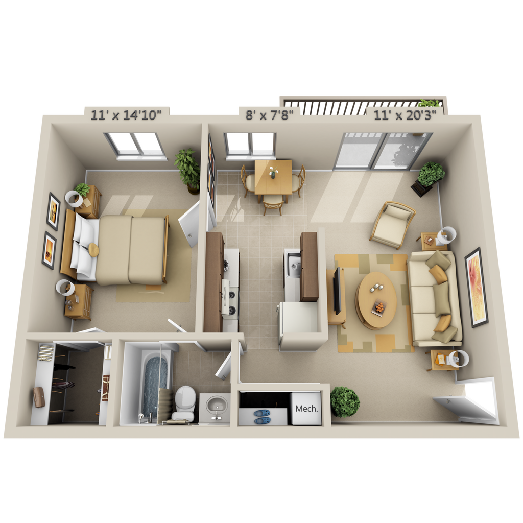 Apartment Model: BaronetFrom $1,1132 Bedroom, 1 Bath, 837 sq ftAvailable NowFloorplans3D Tours![]()