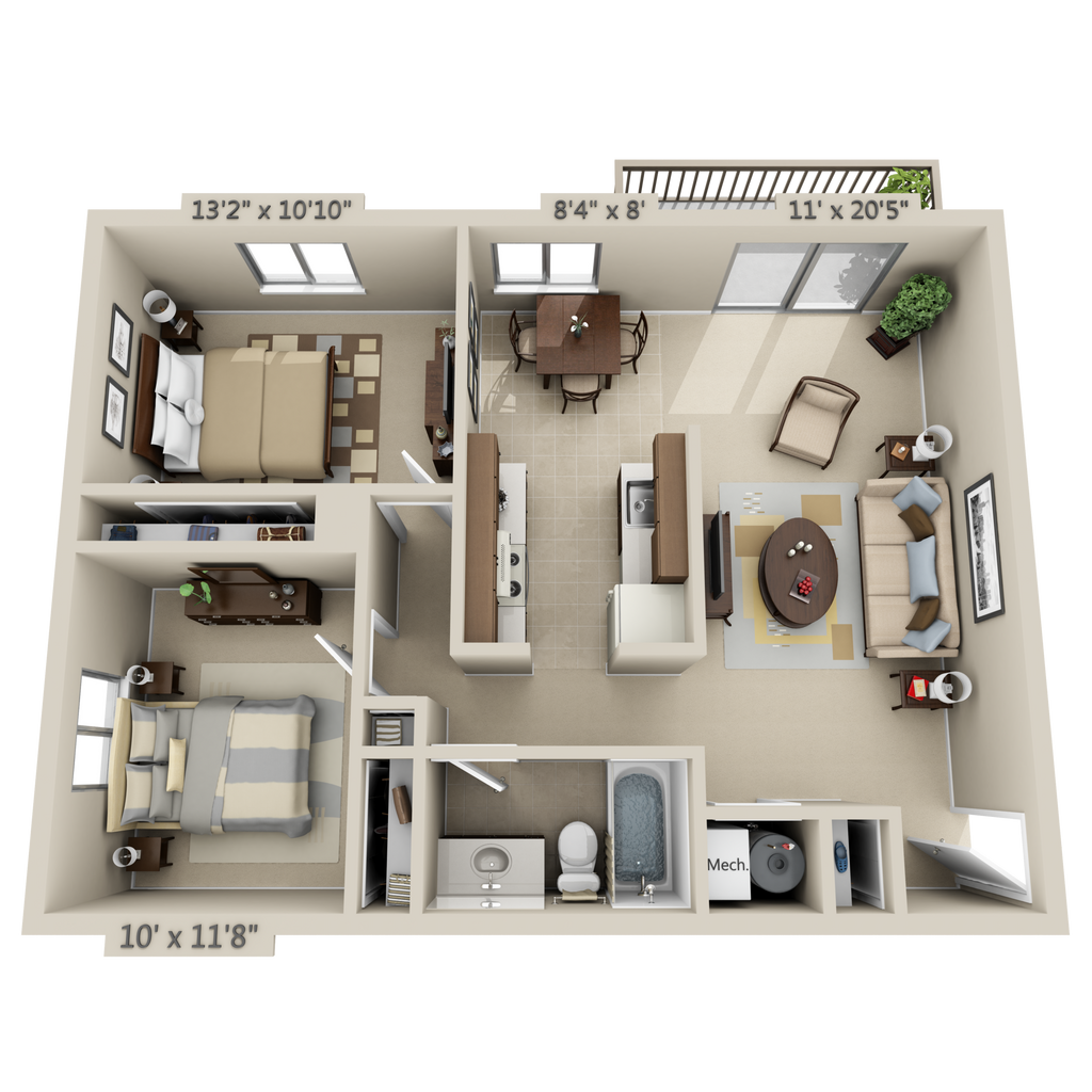 2 Beds, 1 Bath, 837 sq ftAvailable NowModel Gallery