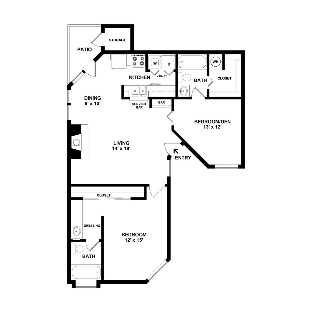 2 Beds, 2 Baths, 1211 sq ftLargest 2 BedroomThis is the largest 2 Bedroom at this PropertyModel Gallery