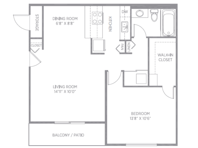 Apartment Model: 1ARFrom $9651 Bedroom, 1 Bath, 679 sq ftAvailable October 31, 2025![]()