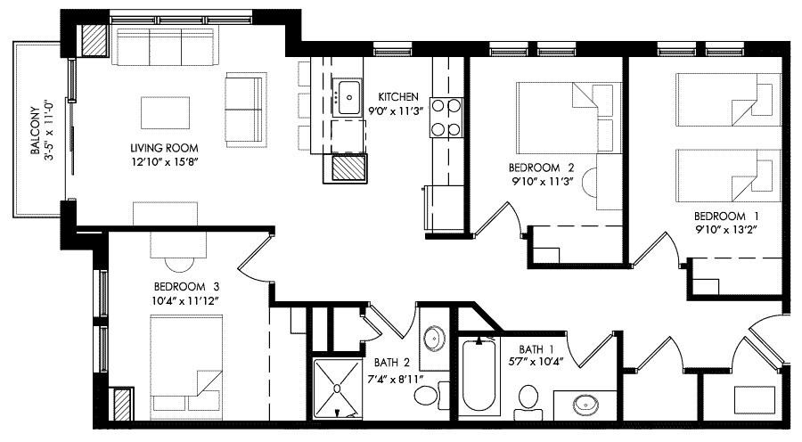 H - Floorplan 1 Apartment Unit: PrivateApartment Model: H$4,7503 Bedroom, 2 Bath, 1067 sq ftAvailable NowApartment Unit: Entire UnitApartment Model: H$4,7503 Bedroom, 2 Bath, 1067 sq ftAvailable August 14, 2026Apartment Unit: PrivateApartment Model: H$1,5843 Bedroom, 2 Bath, 1067 sq ftAvailable August 14, 2026Floorplan E1