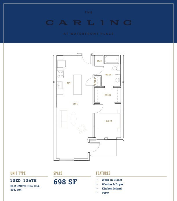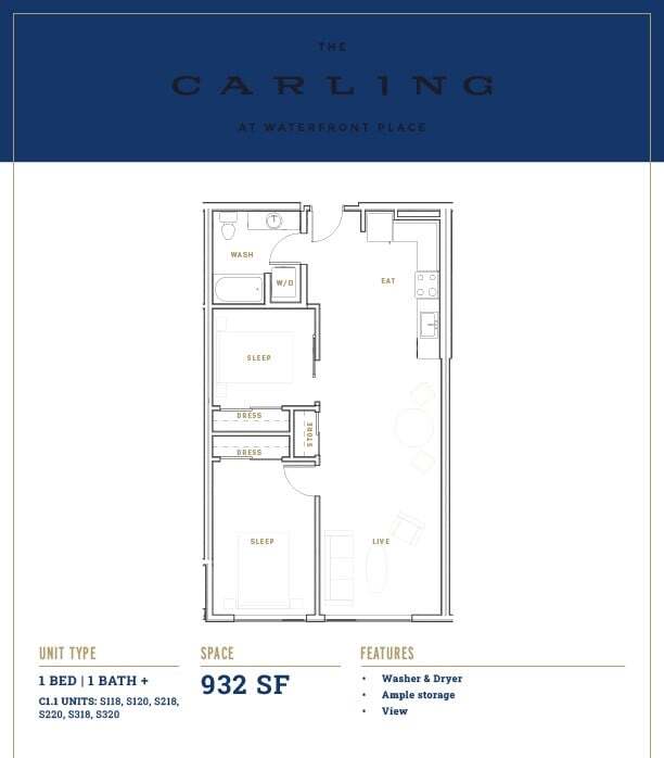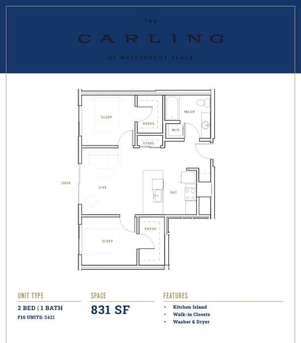 Waterfront Place offers 1 to 2 Bedroom apartments starting from $1,846 and having 569–933 sq ft. Here is the current pricing and availability: