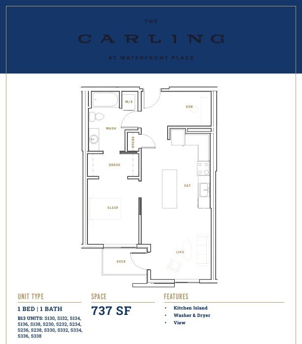 B13 - Floorplan 1 Apartment Unit: S332Apartment Model: B13From $2,7271 Bedroom, 1 Bath, 737 sq ftAvailable NowFloorplan C6