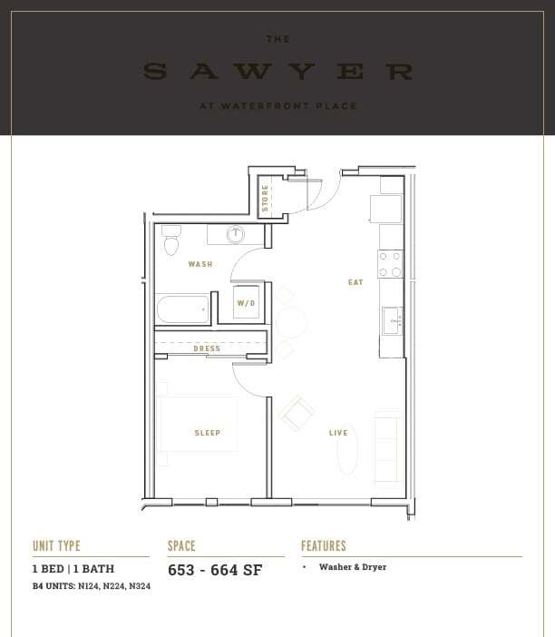 B20 - Floorplan 1 Apartment Unit: S425Apartment Model: B20From $2,4221 Bedroom, 1 Bath, 663 sq ftAvailable NowFloorplan B1