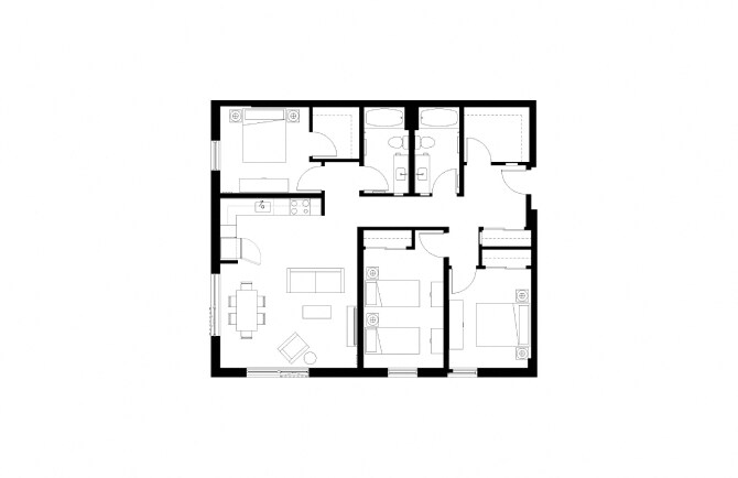 3 Bedroom 2 Bath - Floorplan 4 ![]()