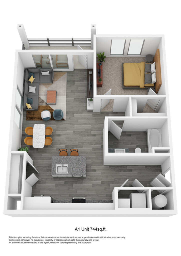 1 Bed, 1 Bath, 740-744 sq ftAvailable NowModel Gallery