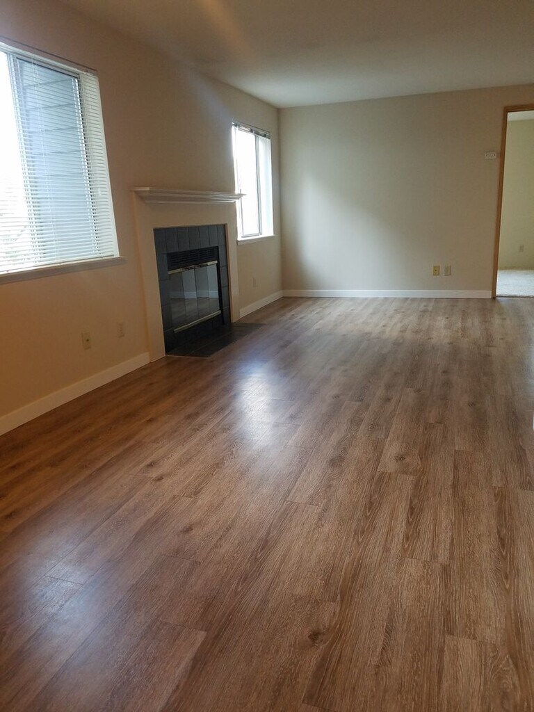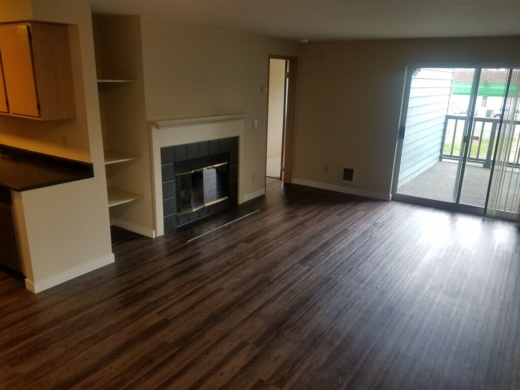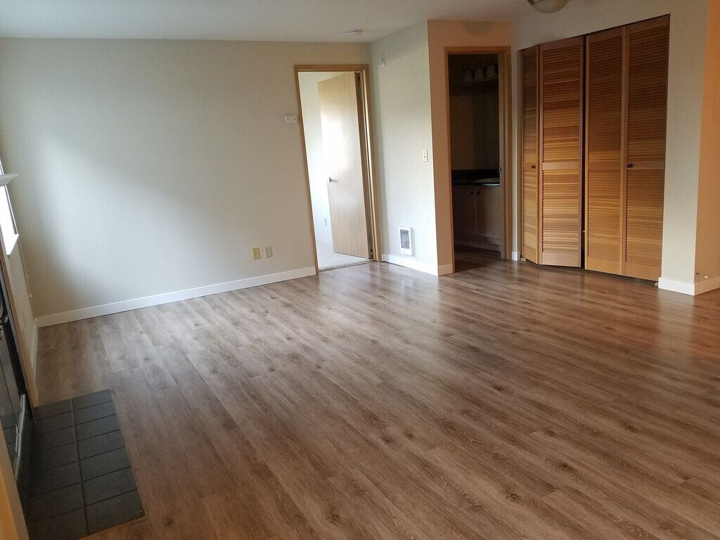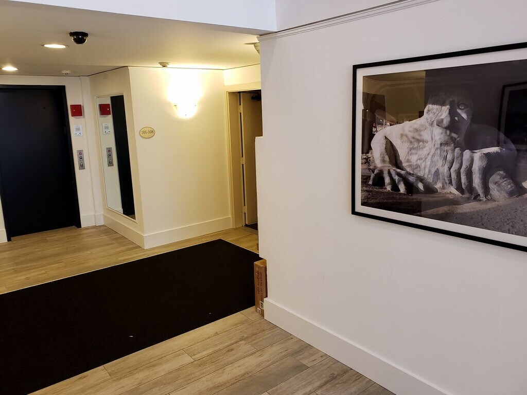 Updated 1bd, vinyl plank flooring , fireplace. garage parking available. Amazon box on premises, Roof top deck. Best location. cat okay.