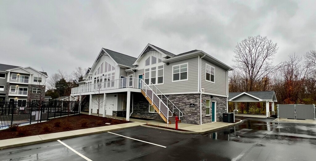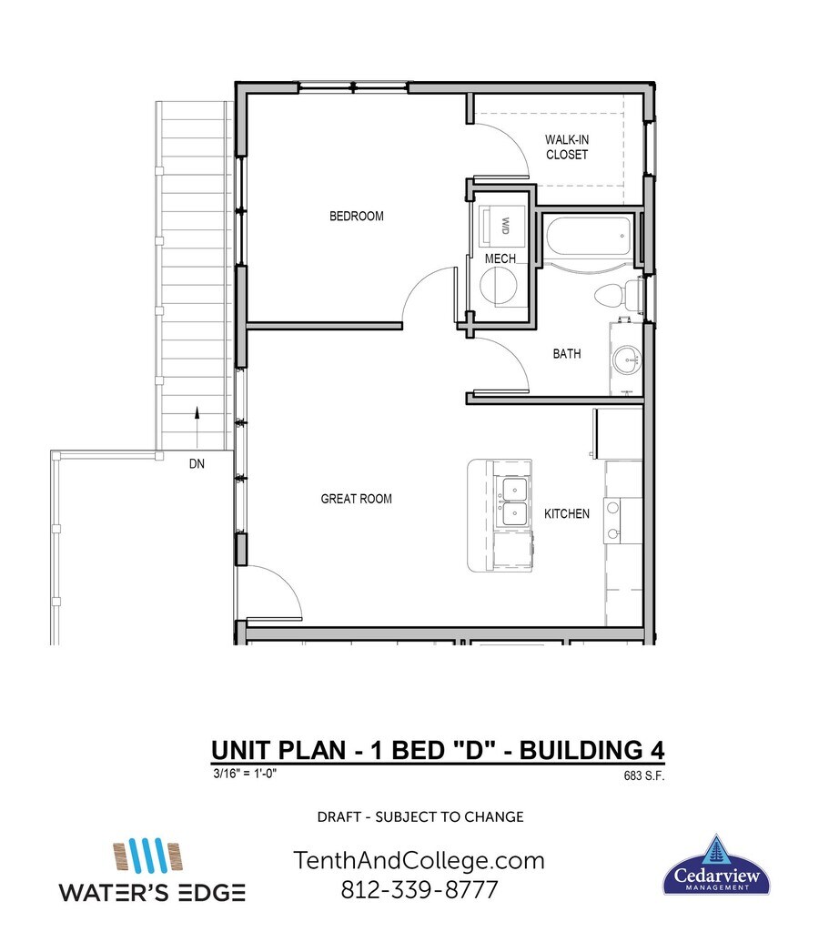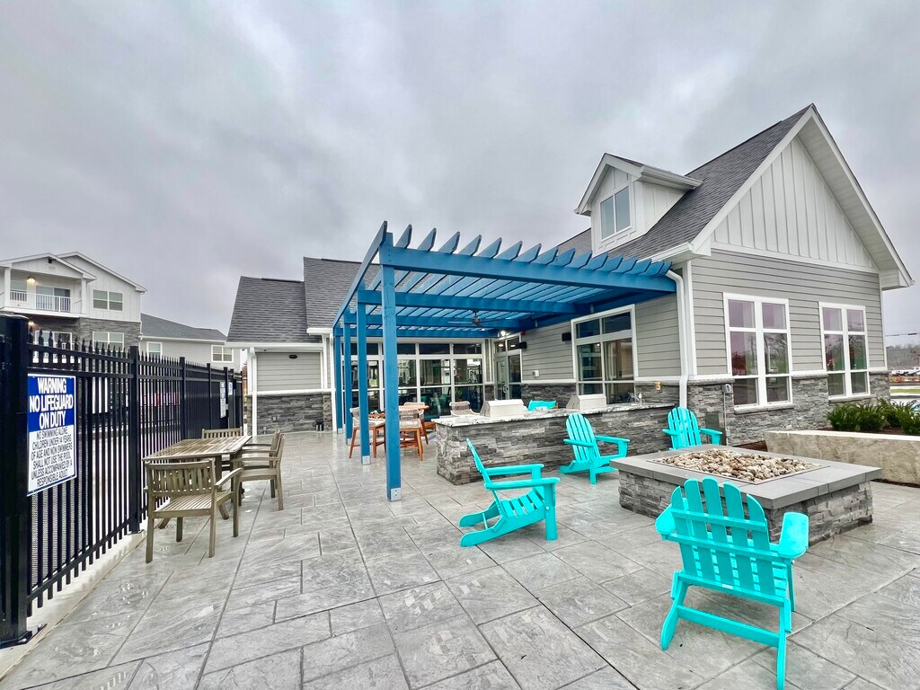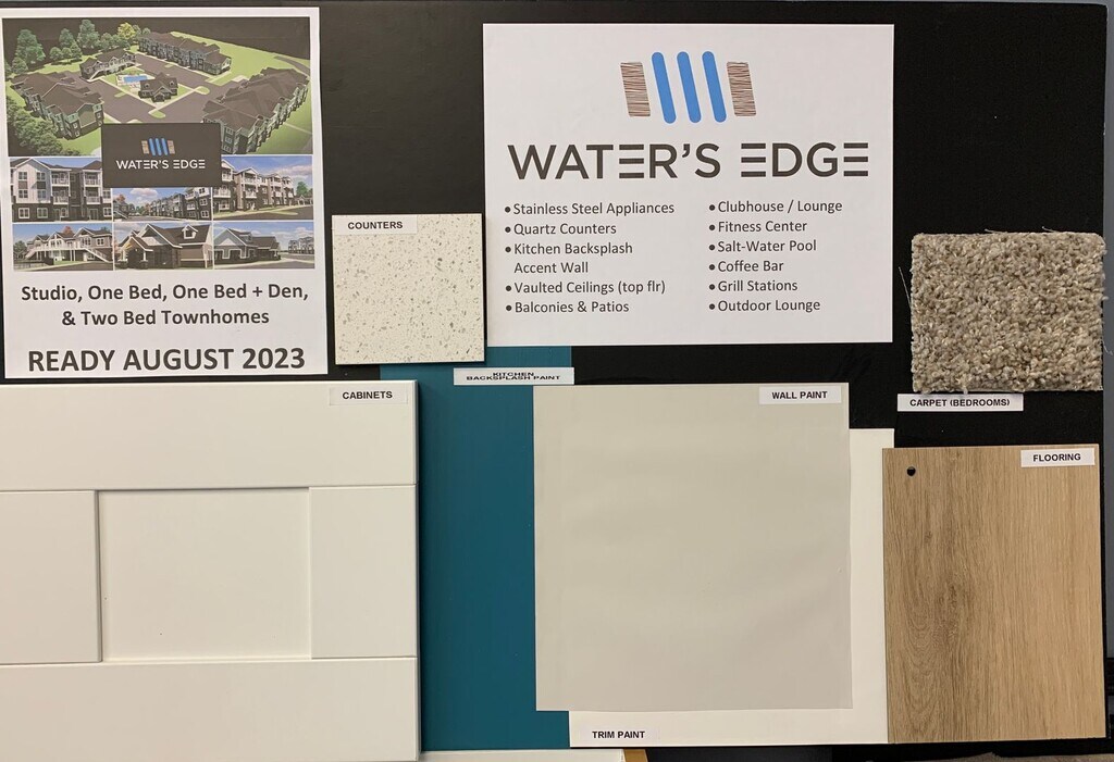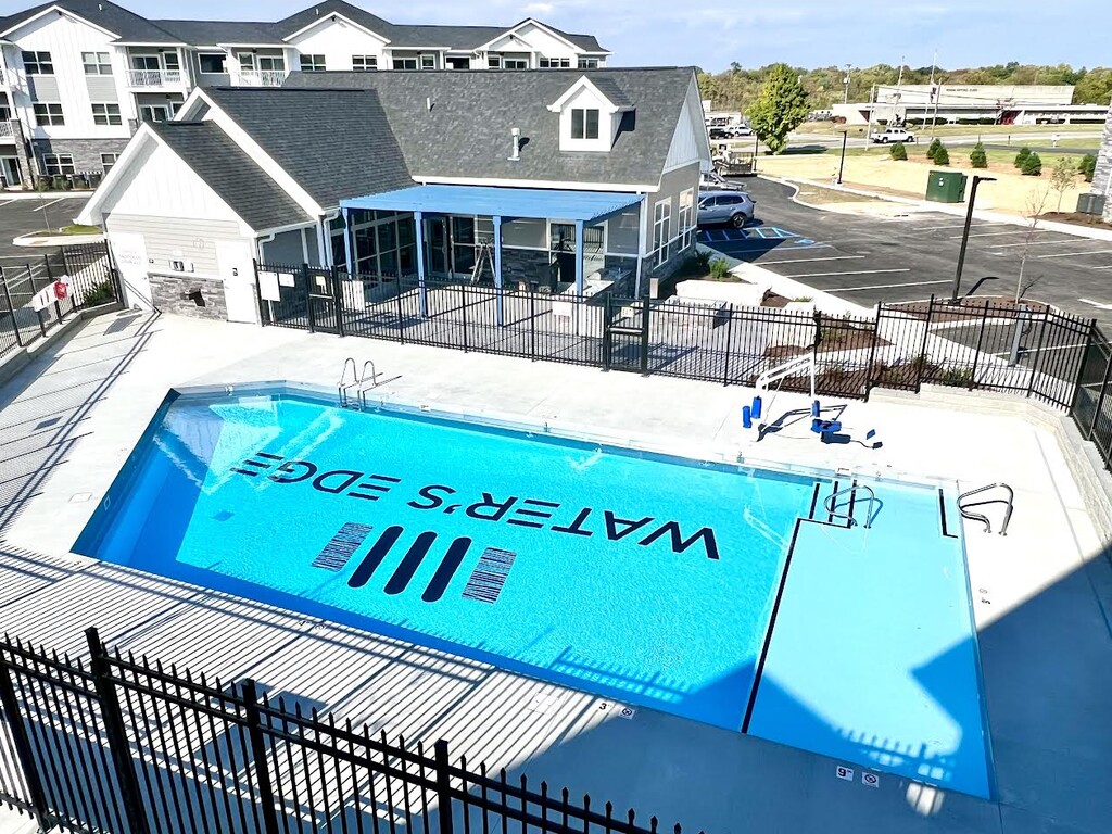 Water’s Edge, a NEW apartment community featuring 9 stylish floor plans. We are conveniently located close to the Indiana University campus and major employers in Bloomington Indiana, Monroe County and surrounding counties. With shopping, restaurants, banking, and more nearby, Water’s Edge has the upscale lifestyle you want in your new home. Pet friendly. Need we say more? We LOVE your pets! The residents of Water’s Edge enjoy a clubhouse with fitness center, business center, fireplace, lounge / entertainment area, coffee bar and secured package room. Outdoor amenities include a covered patio area with outdoor kitchen and grilling area, fire-pit / hang-out zone, and a salt-water pool. There are also on-site EV charging stations and secured bicycle lockers. Water’s Edge offers ample parking with some reserved carport and garages available for lease. Keep It Salty!