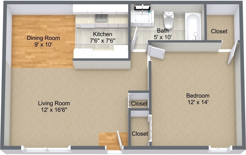 Apartment Model: 1/1From $9751 Bedroom, 1 Bath, 764 sq ftAvailable Now1/1 - Floorplan 1 2 Bedrooms