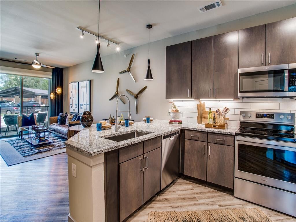 Waters Edge at Mansfield (previously named Aura 3Fifty-One) celebrates the soul and spirit of Grand Prairie. Set in the center of the Metroplex with architecture inspired by the Texas Hill Country's rustic beauty, our apartments for rent in Grand Prairie offer thoughtfully curated one, two, and three-bedroom floor plans. Residents who desire the most modern interiors, designer finishes, gathering spaces, a dog park, and landscaped esplanades will surely enjoy our Grand Prairie, TX apartments. Contact us today for more details on applying and availability!