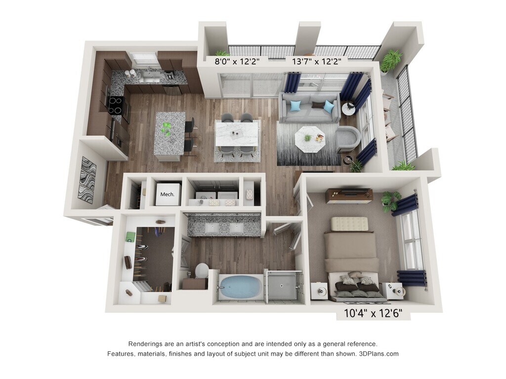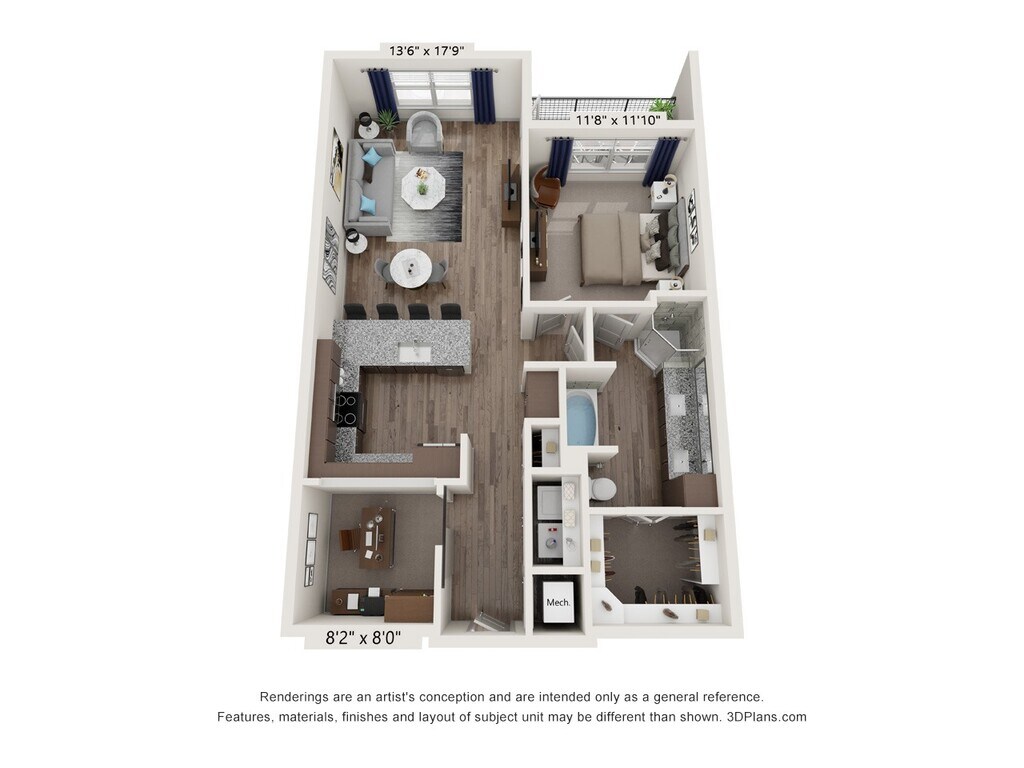 1 Bed, 1 Bath, 736 sq ftAvailable NowModel Gallery