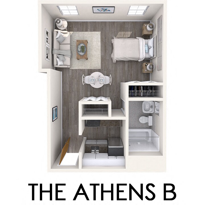 - Studio- Studio- From $1,278Studio, 1 Bath, 408 sq ftAvailable Now- Model Gallery- Floorplans- Availability Details- Price - Availability Date - Unit - Sq Ft - View Details - $1,278 - Available Now - 180 - 408 - $1,336 - December 10, 2025 - 257 - 408 - Model Amenities and Features- Features- High Speed Internet Access