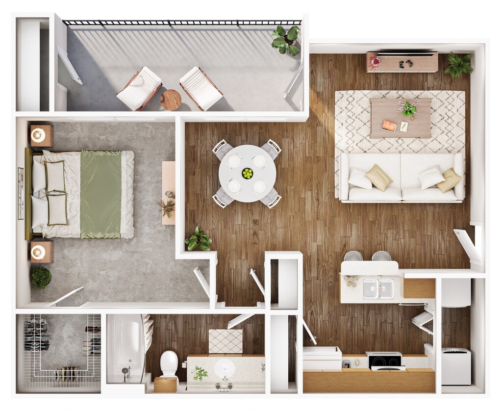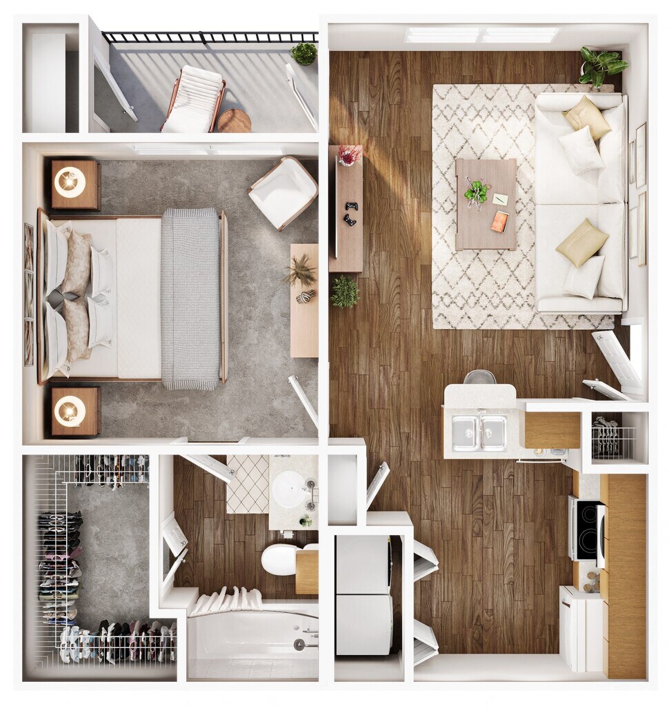 1 Bed, 1 Bath, 615 sq ftAvailable NowModel Gallery