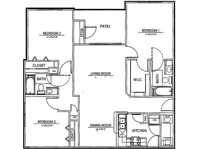 C1 - 3bed/2bath - Floorplan 2 Apartment Unit: 0921Apartment Model: C1 - 3bed/2bath3 Bedroom, 2 Bath, 1225 sq ftAvailable Now