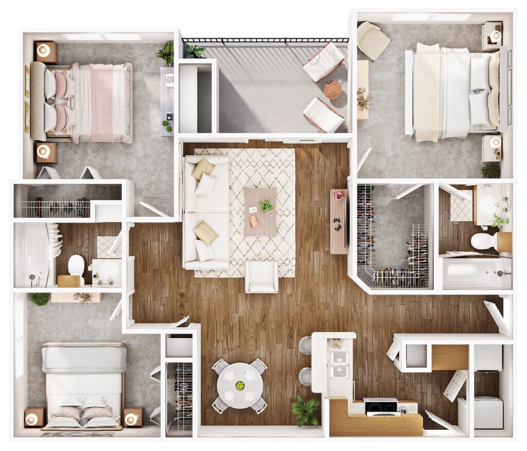 B1 - 2bed/2bath - Floorplan 2 3 Bedrooms