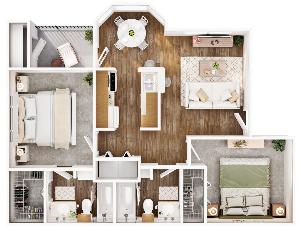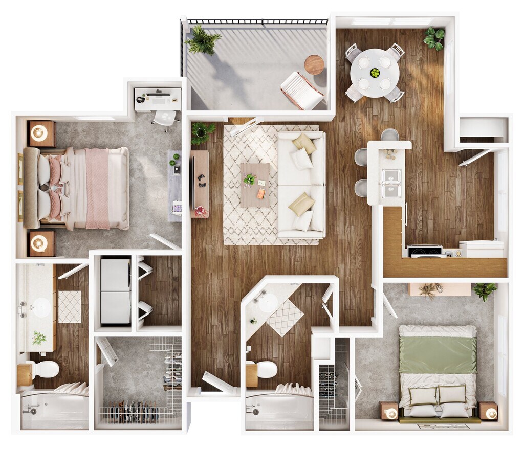 2 Beds, 2 Baths, 845 sq ftModel Gallery