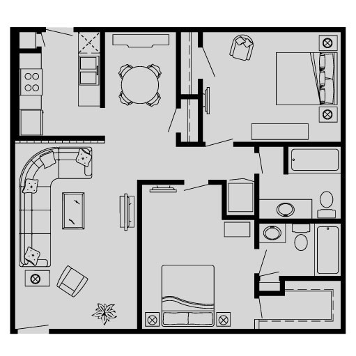 2 Beds, 2 Baths, 960 sq ftAvailable NowModel Gallery