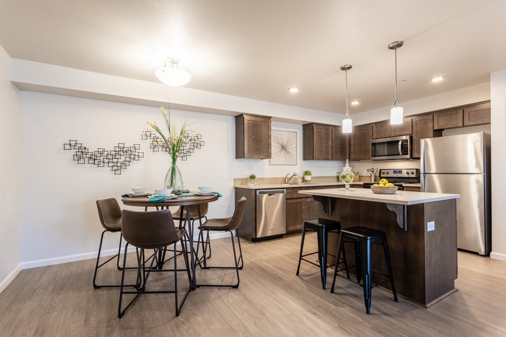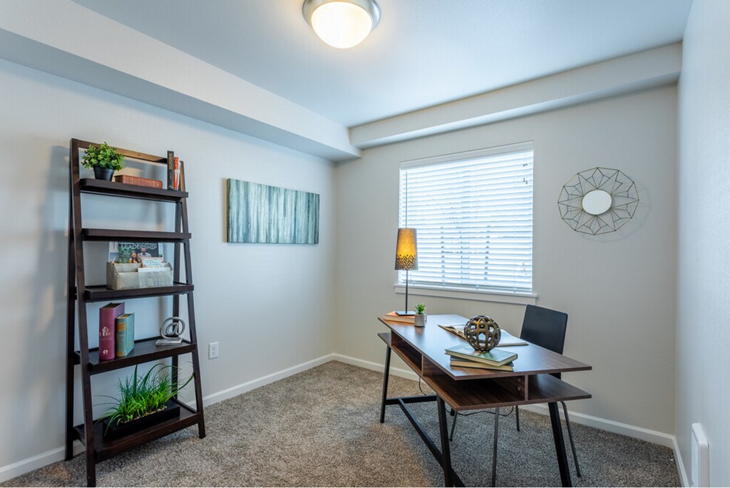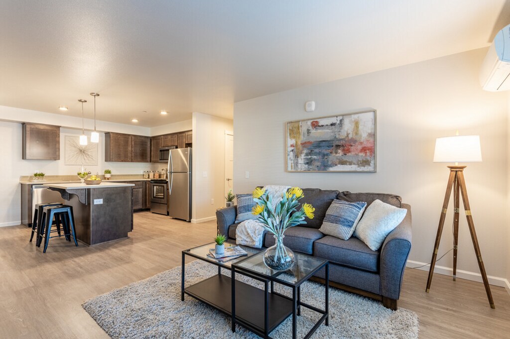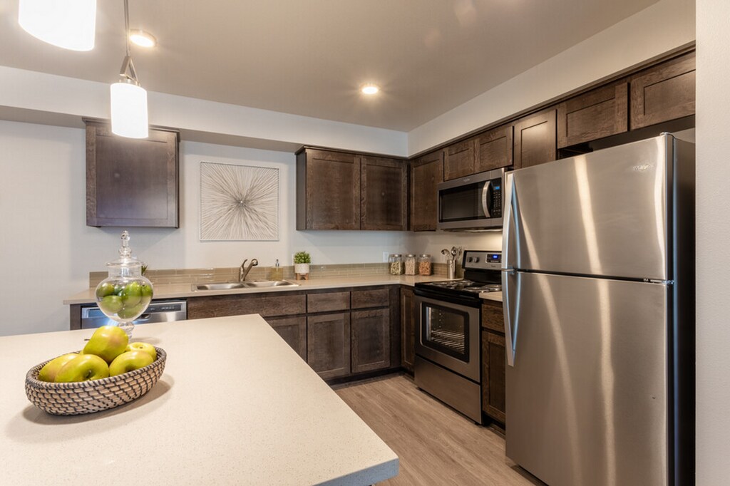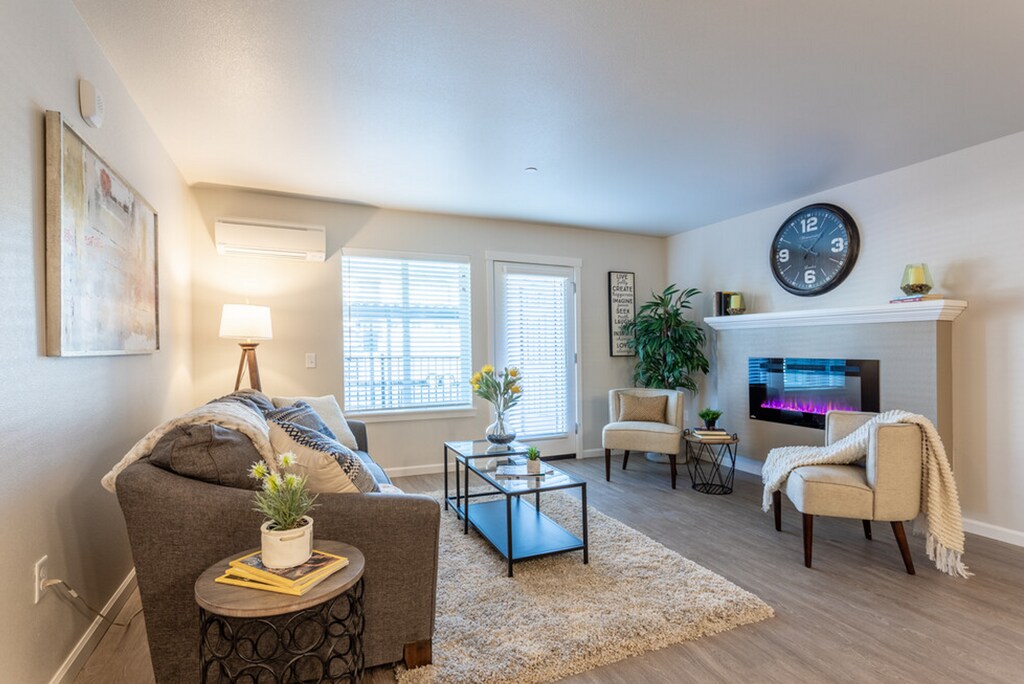 Spacious 1,2, and 3 bedroom apartment homes. Our apartment homes have quartz countertops and tile backsplashes in the kitchen and bathrooms, stainless steel appliances including a built-in microwave and dishwasher, luxury vinyl plank flooring in all areas but the bedrooms, bedrooms have plush carpeting, a large patio with a storage closet, an electric fireplace, air conditioning, washer and dryer hookups, a building elevator and are located in a secured access building.