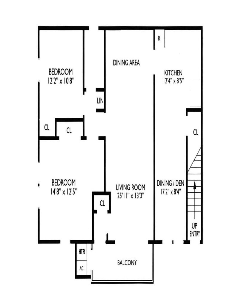 1 Bed 1 Bath - Floorplan 1 2 Bedrooms