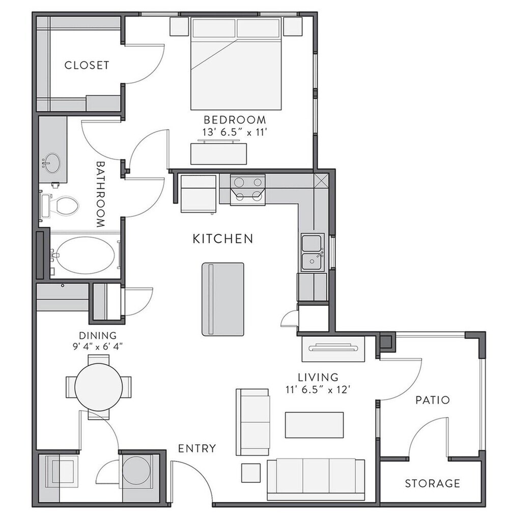 1 Bed, 1 Bath, 651 sq ftModel Gallery