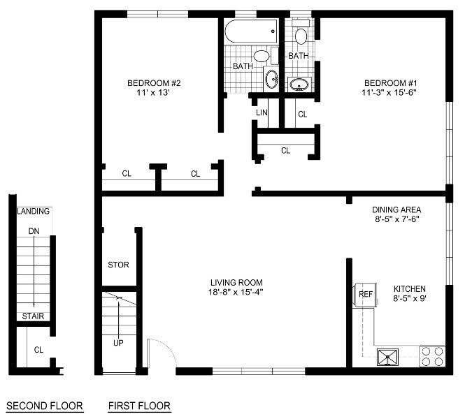2 Bedroom / 1.5 Bath - Floorplan 2 ![]()