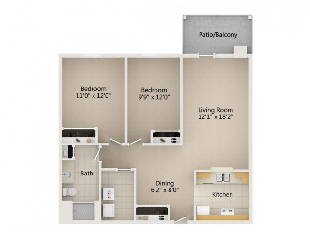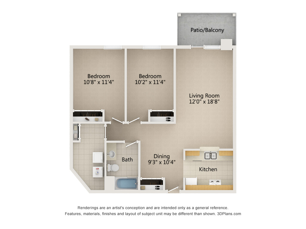 2 Beds, 1.5 Baths, 1041 sq ftLargest 2 BedroomThis is the largest 2 Bedroom at this PropertyModel Gallery