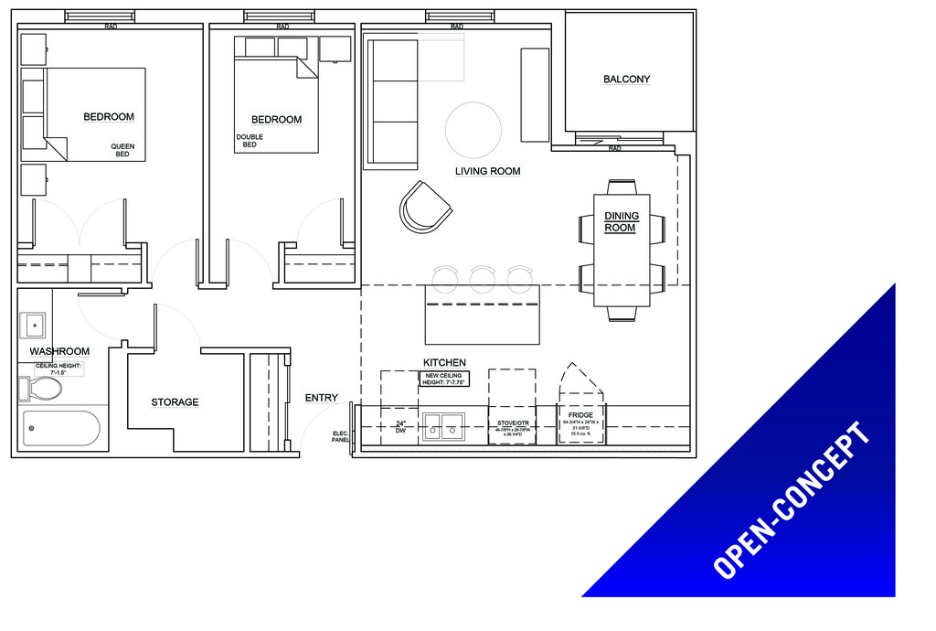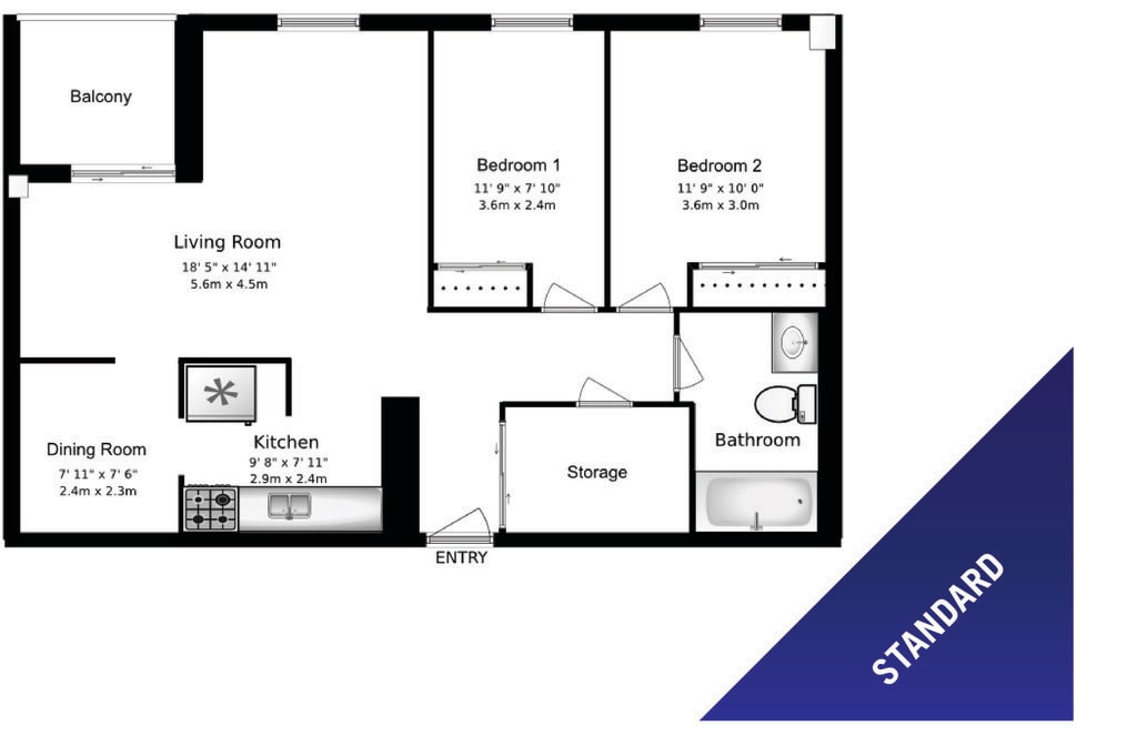 2 Bed 1 Bath A - Floorplan 1 ![]()