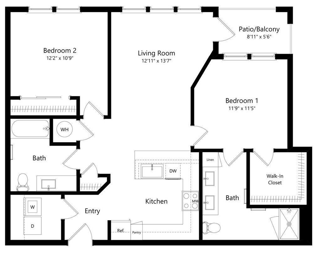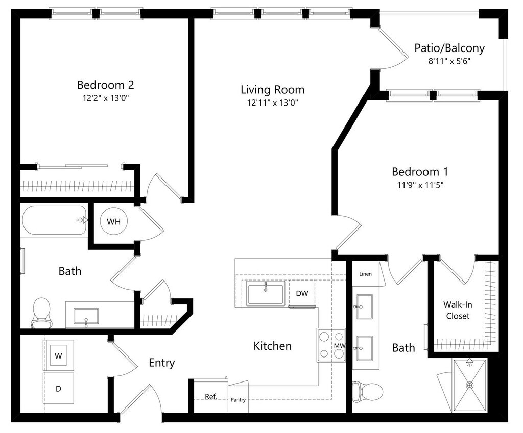 2 Beds, 2 Baths, 1130 sq ftAvailable NowLargest 2 BedroomThis is the largest 2 Bedroom at this PropertyModel Gallery