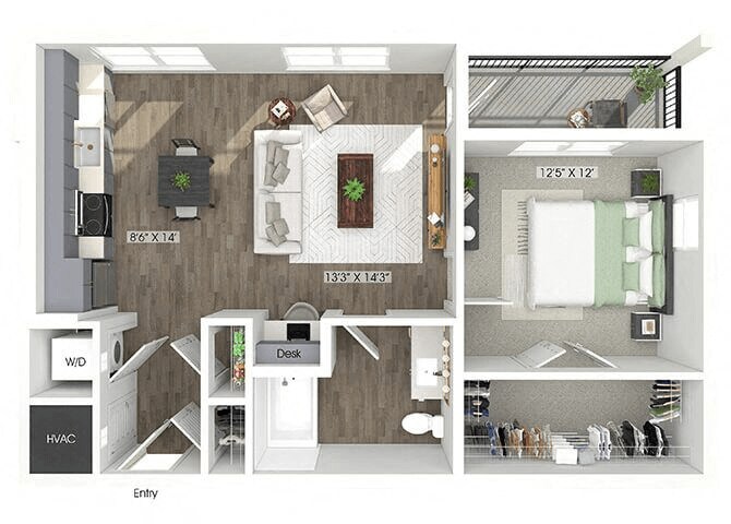 1 Bed, 1 Bath, 713-750 sq ftAvailable NowModel Gallery