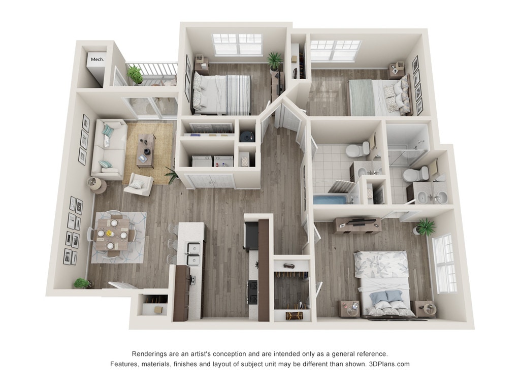 3 Beds, 2 Baths, 1166 sq ftModel Gallery