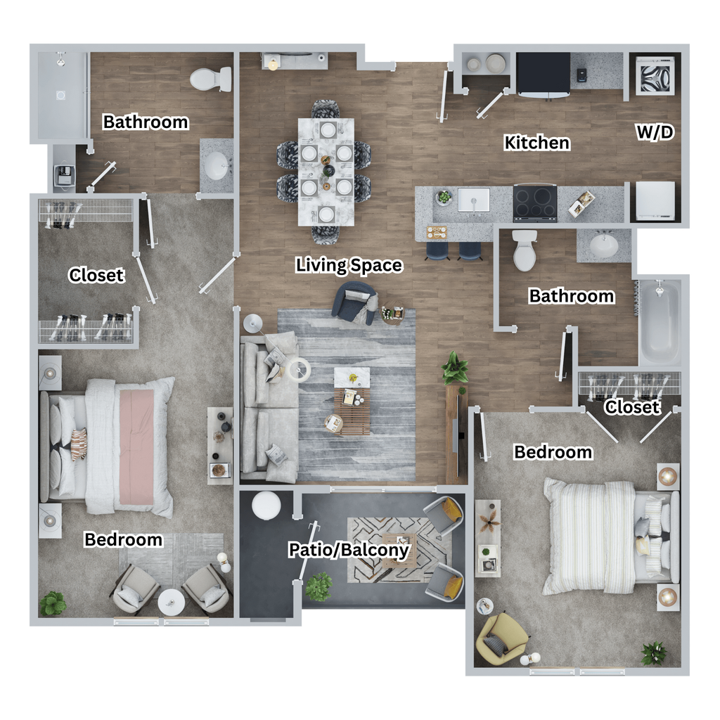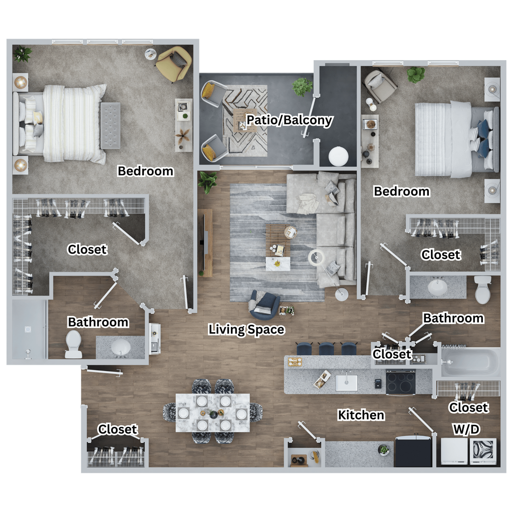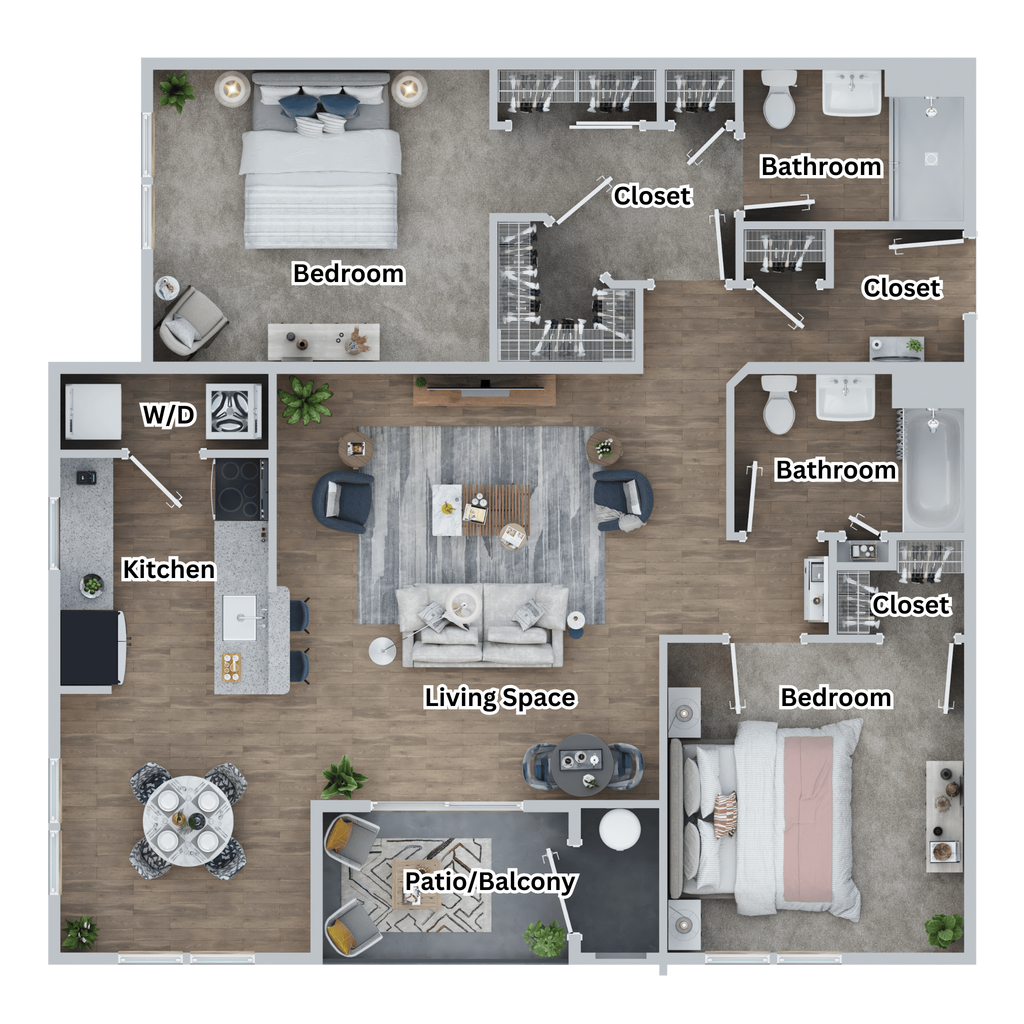 2 Bed 2 Bath - Floorplan 10 Apartment Unit: 1-209Apartment Model: 2 Bed 2 Bath$3,5502 Bedroom, 2 Bath, 1189 sq ftAvailable November 6, 2025![]()