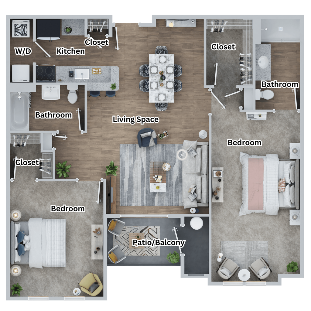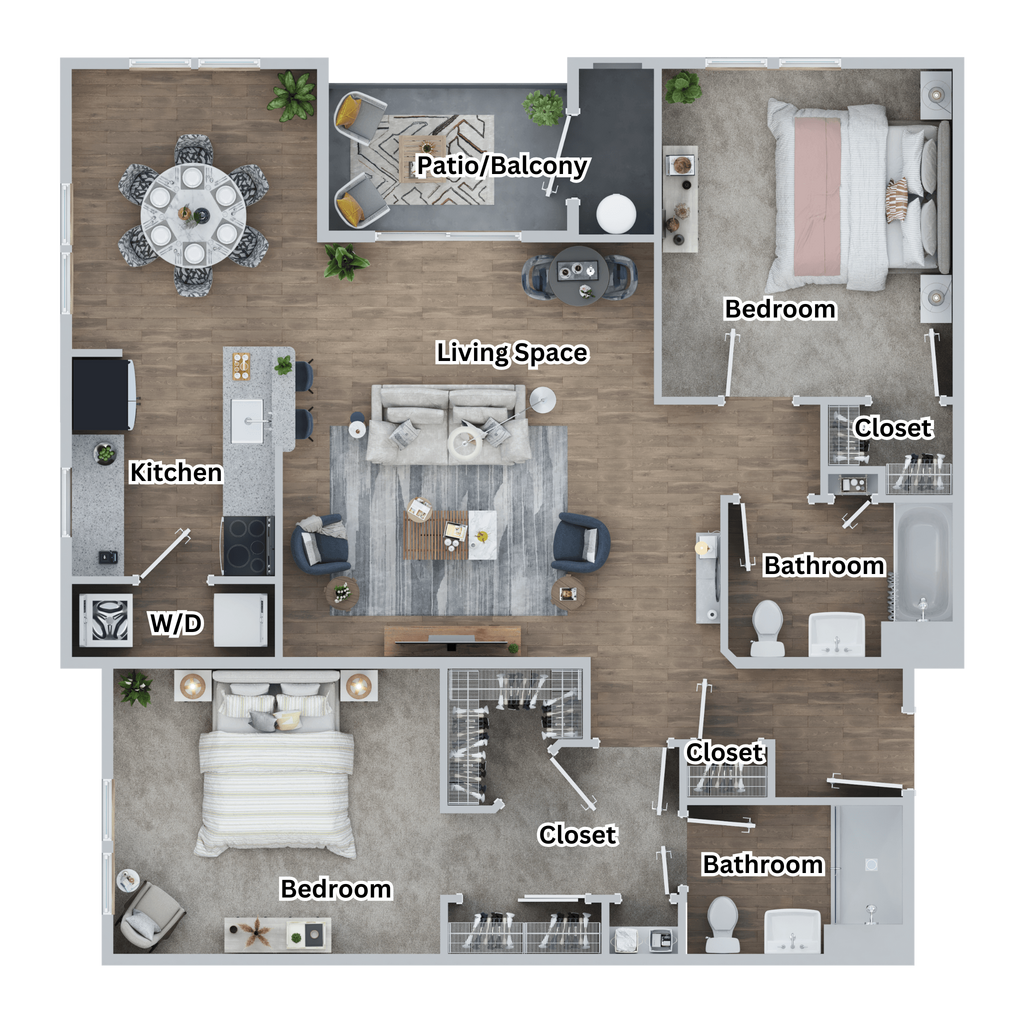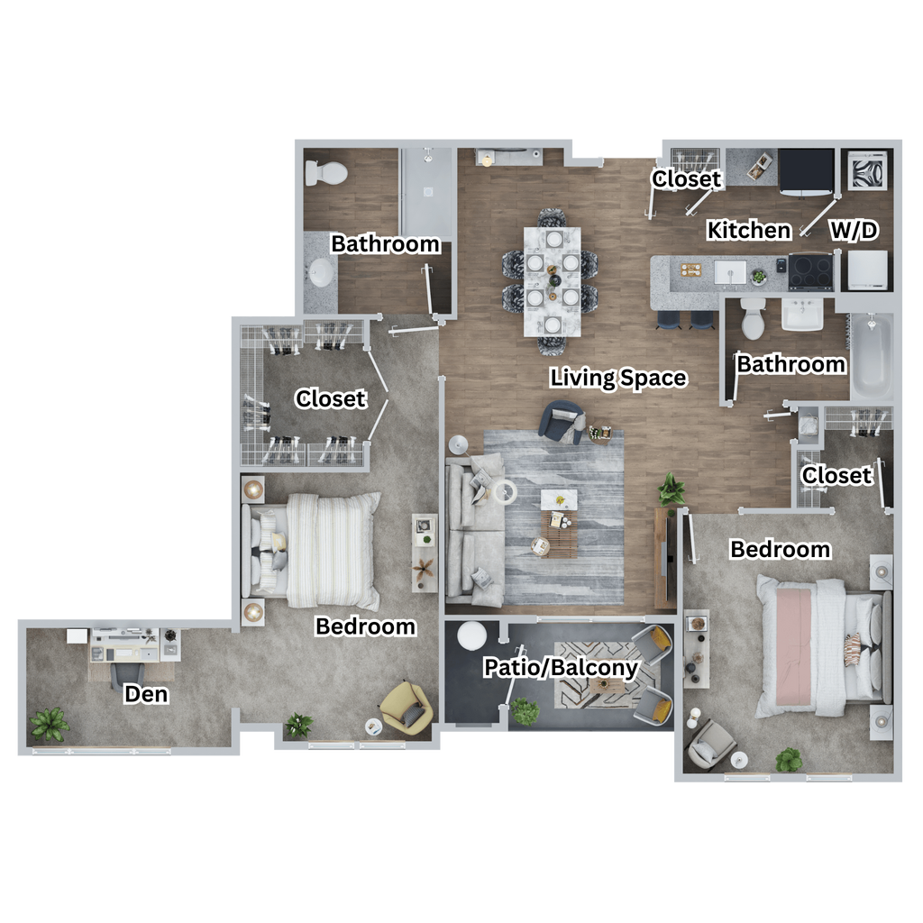 2 Bed 2 Bath - Floorplan 10 Apartment Unit: 1-209Apartment Model: 2 Bed 2 Bath$3,5502 Bedroom, 2 Bath, 1189 sq ftAvailable November 6, 2025![]()