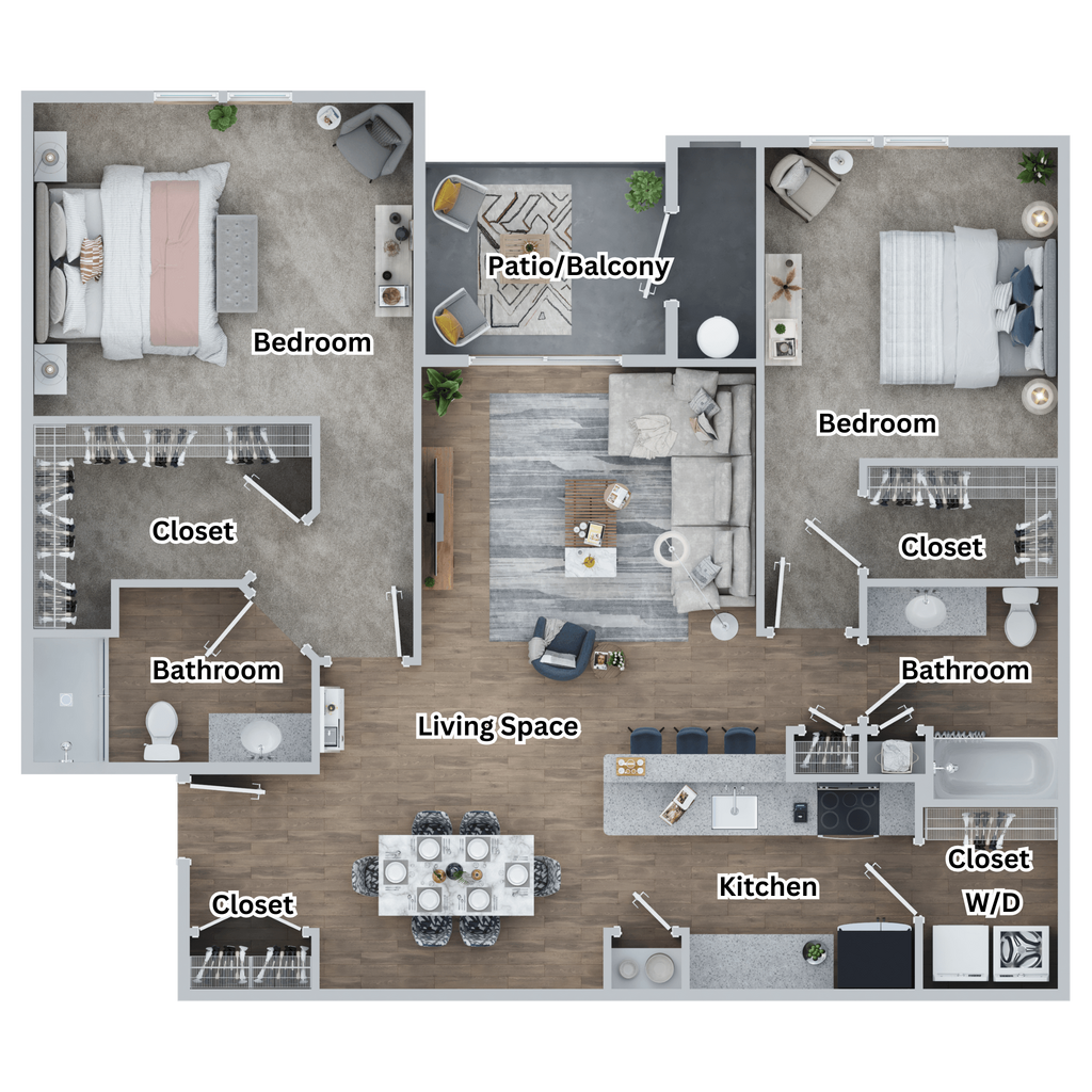 1 Bed 1 Bath - Floorplan 4 2 Bedrooms