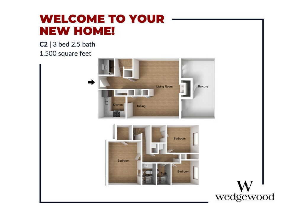 2 Beds, 2.5 Baths, 1500 sq ftAvailable NowModel Gallery