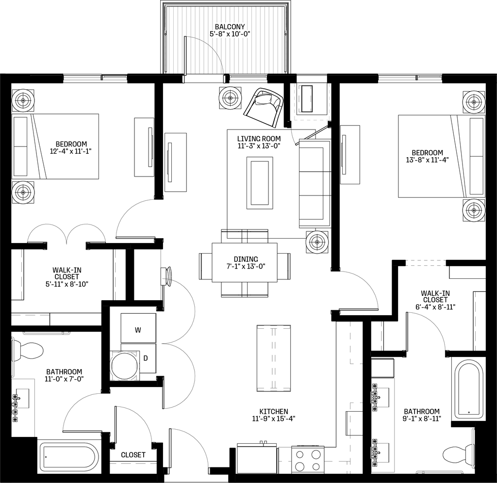 Apartment Model: A5From $2,2091 Bedroom, 1 Bath, 806 sq ftAvailable Now![]()